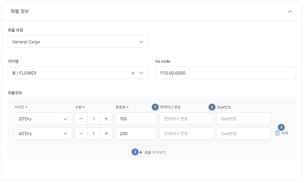 ③ Add Container: If additional containers are needed, click Add Cargo.