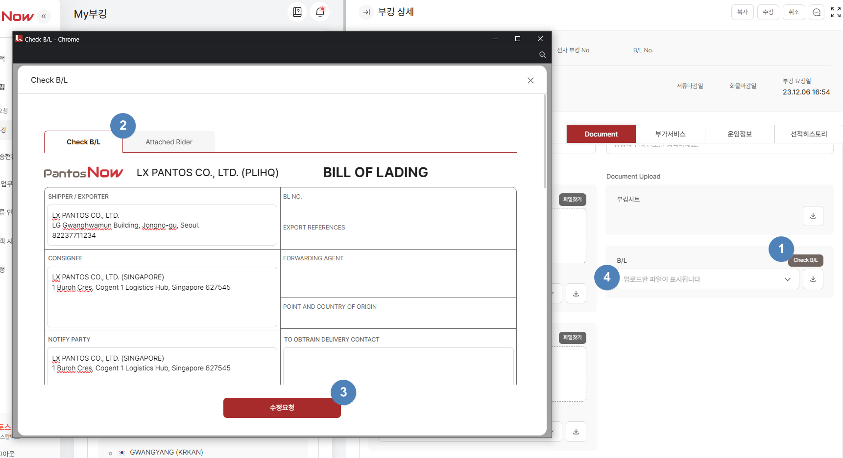 ① Review Check B/L: Confirm the Check B/L issued by the LX Pantos representative.